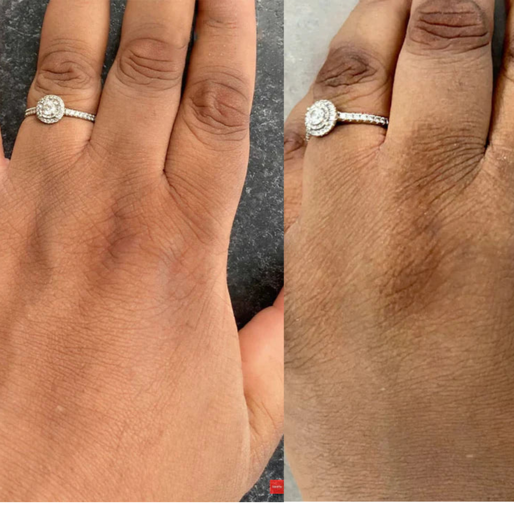 Ich liiiiiiiiiebe diese Seife einfach! Das Vorher und Nachher spricht für sich. Es hat nicht nur meinen Hautton verbessert, es verleiht meiner Haut auch immer diesen schönen, gesunden Glanz.